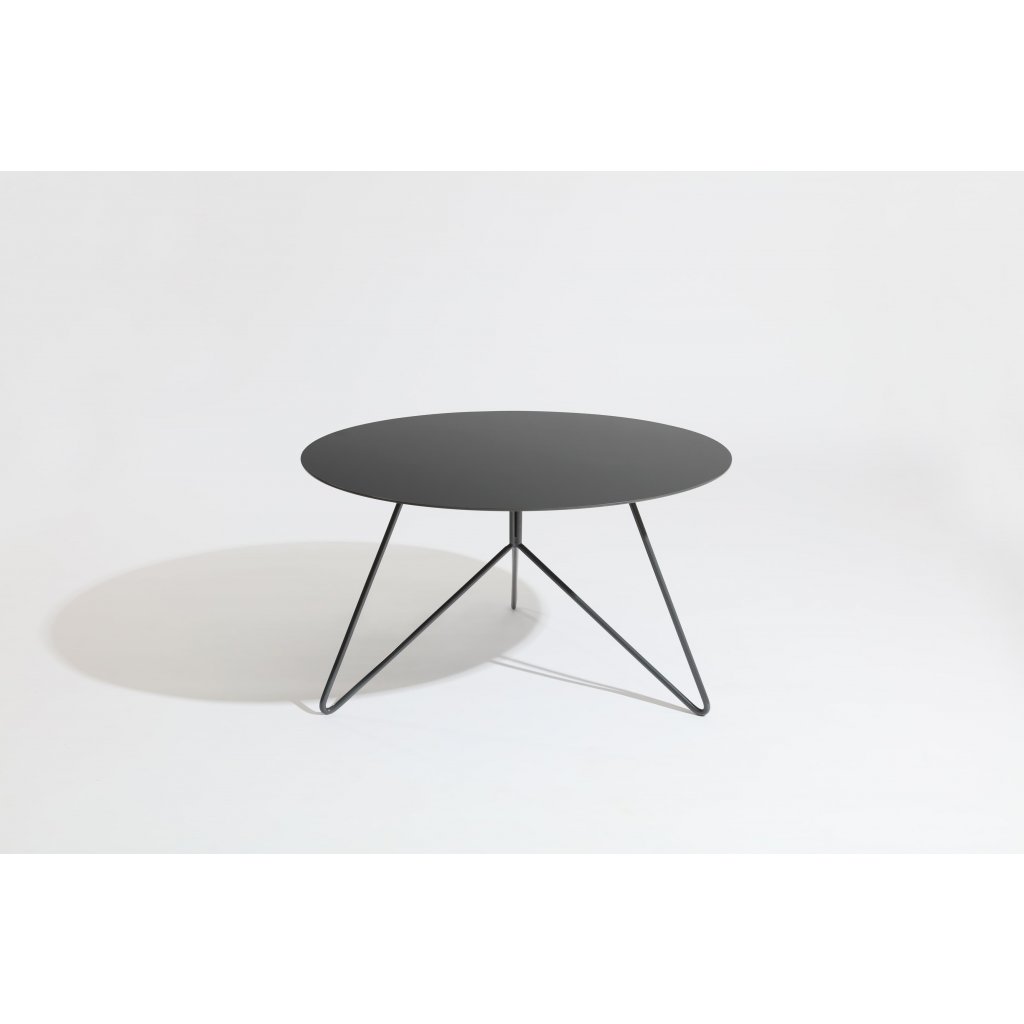 Tento konferenční stolek je vyroben z pevného kovu, který je pokryt antracitovým pískovým lakem, což zajišťuje nejen jeho trvanlivost, ale také moderní a elegantní vzhled. Jeho rozměry 80 cm v průměru a výška 43,5 cm poskytují dostatek místa pro stolování, práci na počítači nebo prezentace.