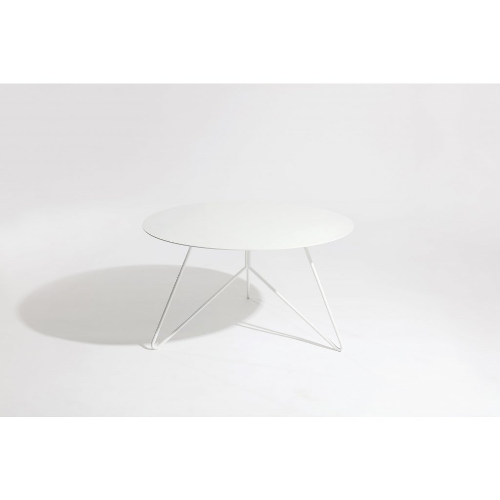 Tento konferenční stolek je vyroben z pevného kovu, který je pokryt černým pískovým lakem, což zajišťuje nejen jeho trvanlivost, ale také moderní a elegantní vzhled. Jeho rozměry 80 cm v průměru a výška 43,5 cm poskytují dostatek místa pro stolování, práci na počítači nebo prezentace.