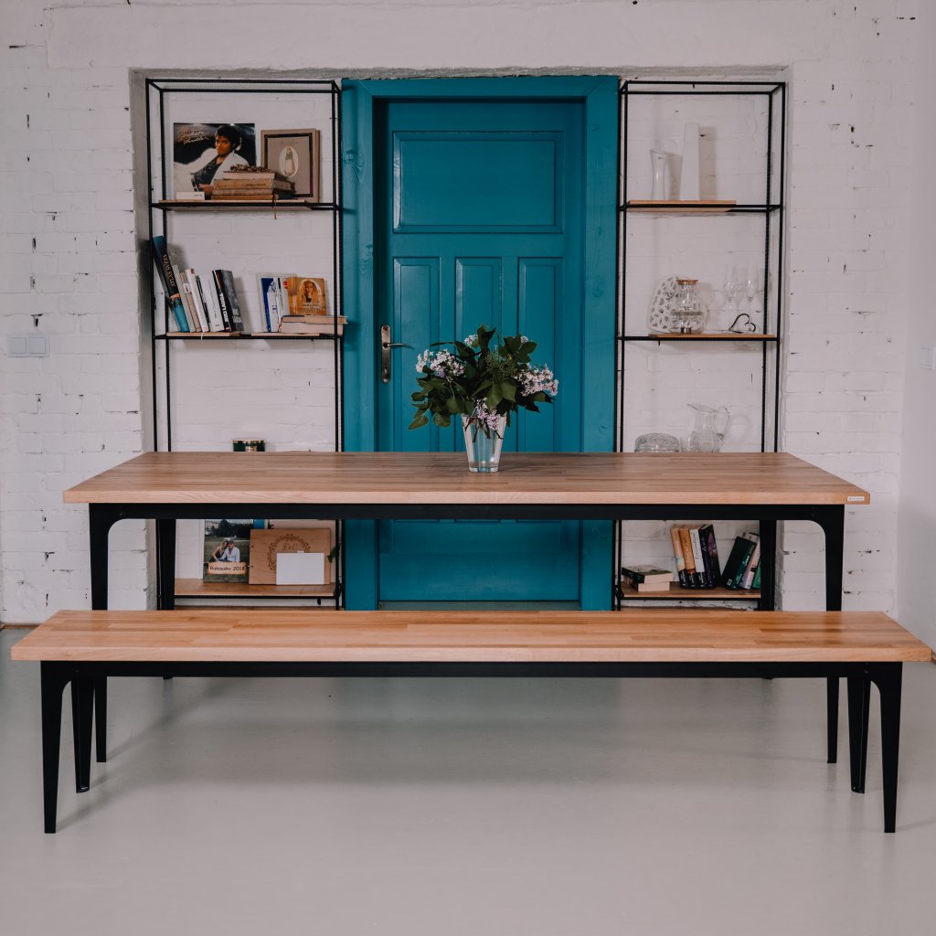 Jídelní stůl s rozměry 100 x 75 x 210 cm (ŠxVxD) a tloušťkou desky 3 cm je středem vaší jídelny, kde se budou odehrávat důležité rodinné okamžiky a večeře s přáteli. Lavice o rozměrech 40 x 46 x 210 cm (ŠxVxD) je praktickým doplňkem, který poskytne extra posezení a přidá šmrnc do vaší jídelny.